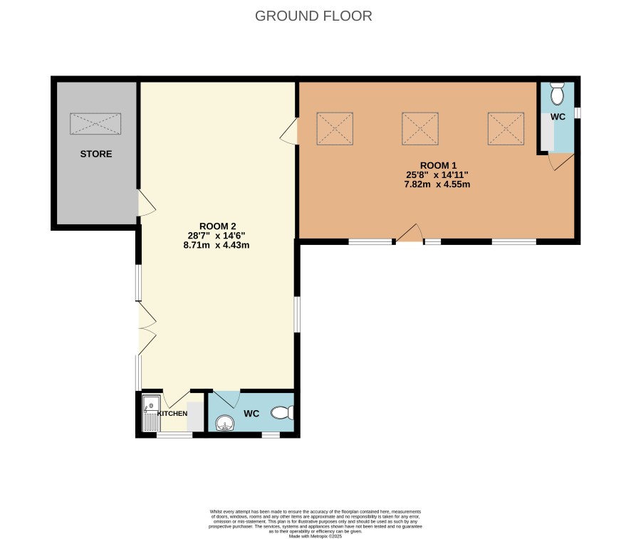 Land Adjoining 8a Paddons Row: Shop Front 24'3'' x 12'8'' (7.38m x 3.87m) Kitchen 5'3'' x 4'1'' (1,59m x 1.51m) Changing Room The Old Stables: Room 1 - 25'8'' x 14'11'' (7.82m x 4.55m) Room 2 - 28'7'' x 14'6'' (8.71m x 4.43m) Store - 7'9'' x 13'7'' (2.36m x 4.15m) W/C Kitchen