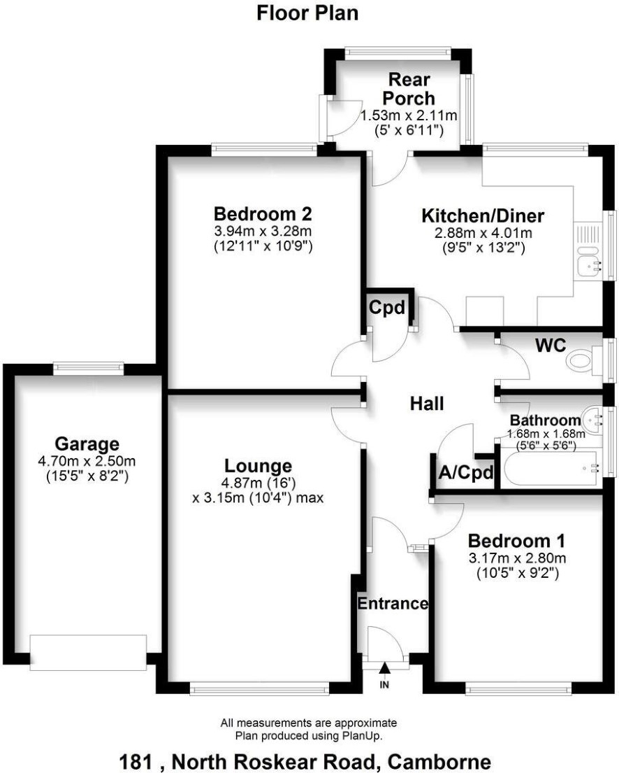 Sitting Room 4.87m x 3.15m Kitchen/Diner 2.88m x 4.01m Bedroom One 3.17m x 2.80m Bedroom Two 3.94m x 3.28m Bathroom 1.68m x 1.68m WC Rear Porch 1.53m x 2.11m Garage 4.70m x 2.50m