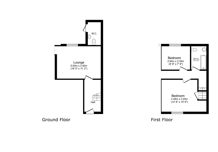 Entrance Hall: Living Room: 19'5" x 11'2" Bedroom One: 14'8" x 10'6" Bedroom Two: 9'8" x 7'9" Bathroom: 7'9" x 5'0" Rear Garden