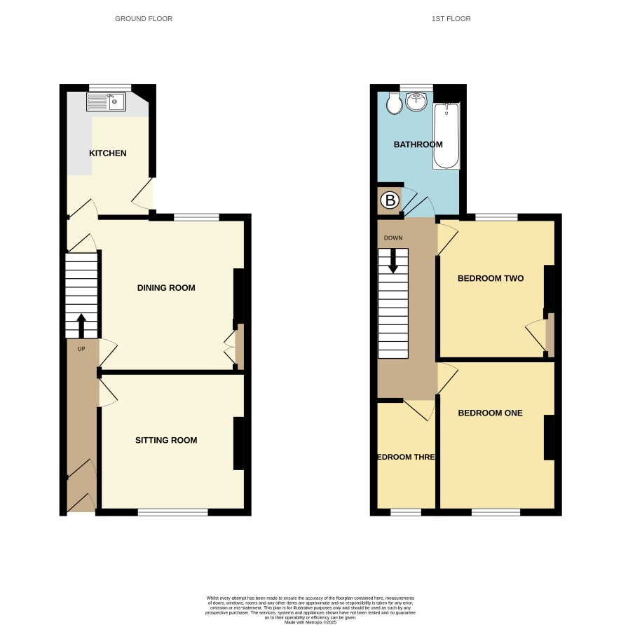 GROUND FLOOR Living Room 3.33m x 3.53m Dining Room 3.74m x 3.69m Kitchen 3.08m x 2.12m FIRST FLOOR Bedroom One 3.64m x 2.84m Bedroom Two 3.44m x 2.90m Bedroom Three 1.60m x 2.65m Bathroom 2.15m x 3.11m