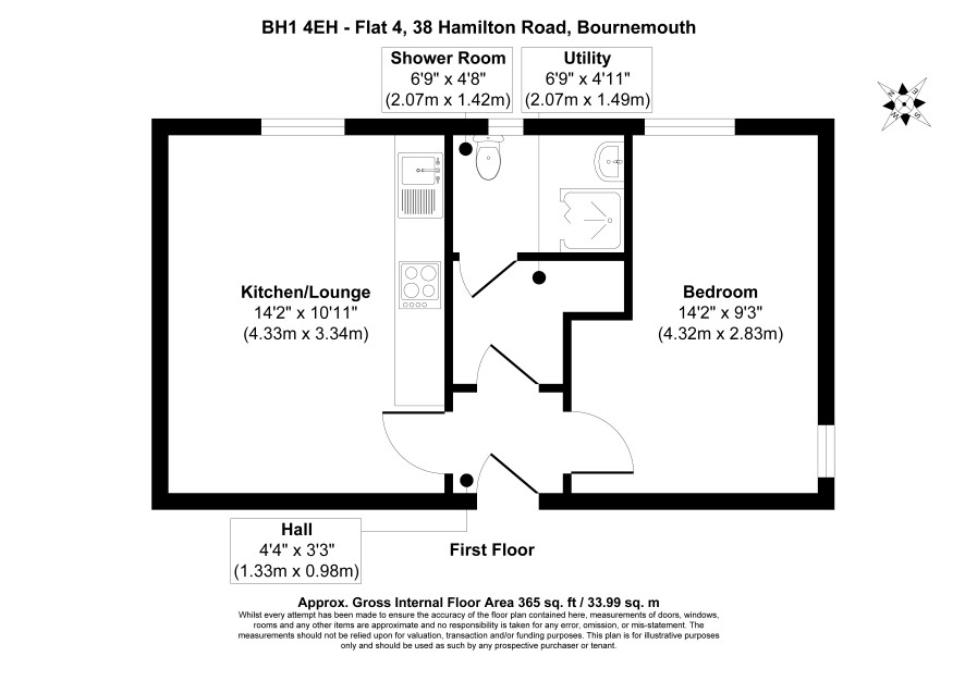 Entrance Hall: Living/Kitchen/Diner: 14'2" x 10'11" Utility: 6'9" x 4'11" Bedroom: 14'2" x 9'3" Shower Room: 6'9" x 4'8"