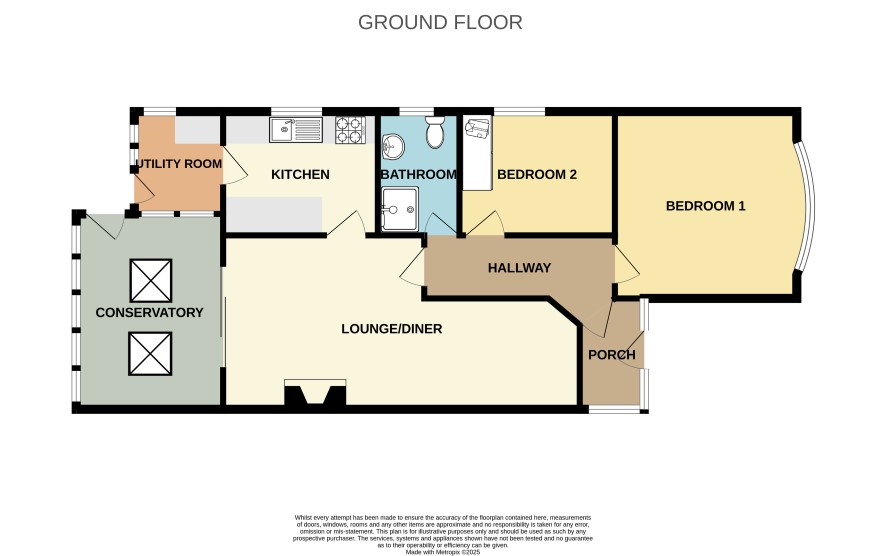 Porch Living / Dining Room: 7.30m x 2.37m Kitchen: 2.41m x 3.04m Conservatory: 3.51m x 2.90m Bedroom One: 3.69m x 3.59m Bedroom Two: 2.45m x 3.07m Garden