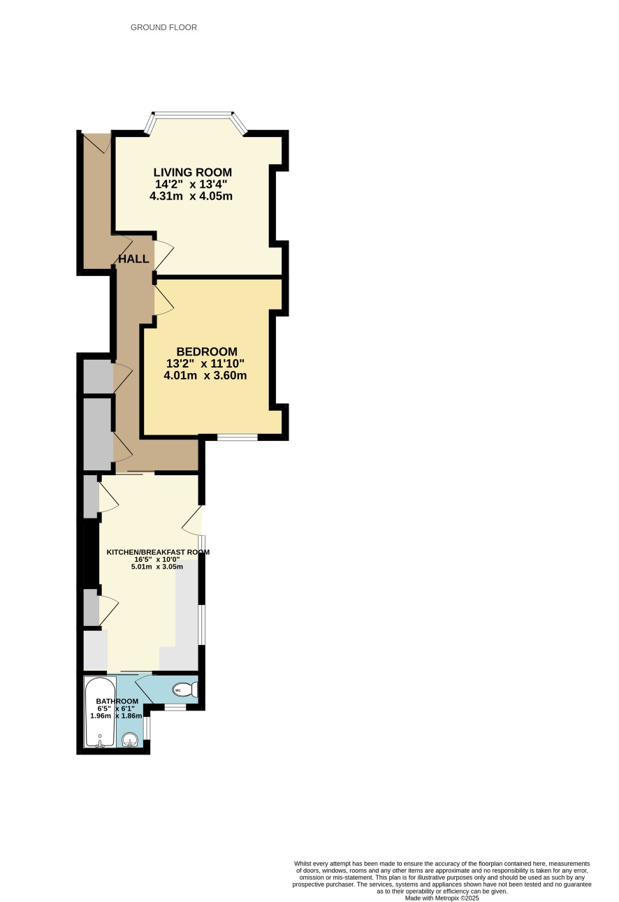 Communal Hallway Hall Living Room - 14'2" x 13'4" (4.31m x 4.05m) Bedroom - 13'2" x 11'10" (4.01m x 3.60m) Kitchen/Breakfast Room - 16'5" x 10'0" (5.01m x 3.05m) Bathroom - 6'5" x 5'6" (1.95m x 1.68m) W/C