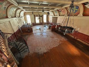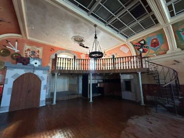 Entrance Double Arched Doors lead into the internal vestibule, side room to the right, ideal for counter or similar, staircase leads up into the property's accommodation. Ground Floor Area Approximately 2000 Sq Feet and comprising of a large single area, hallway, male and female WC rooms, kitchen area with the majority of the infrastructure in place. Main Floor Area In excess of 2200 Sq Ft and 16 feet from floor to ceiling, this area offers massive scope for development. Comprising large windows to the front aspect, a bar area and a fabulous coloured panel glass part ceiling for lighting purposes, staircase leads up to an extra mezzanine level. Mezzanine Level Spiral staircase ascending to Mezzanine level with timber door leading out to decked roof terrace.