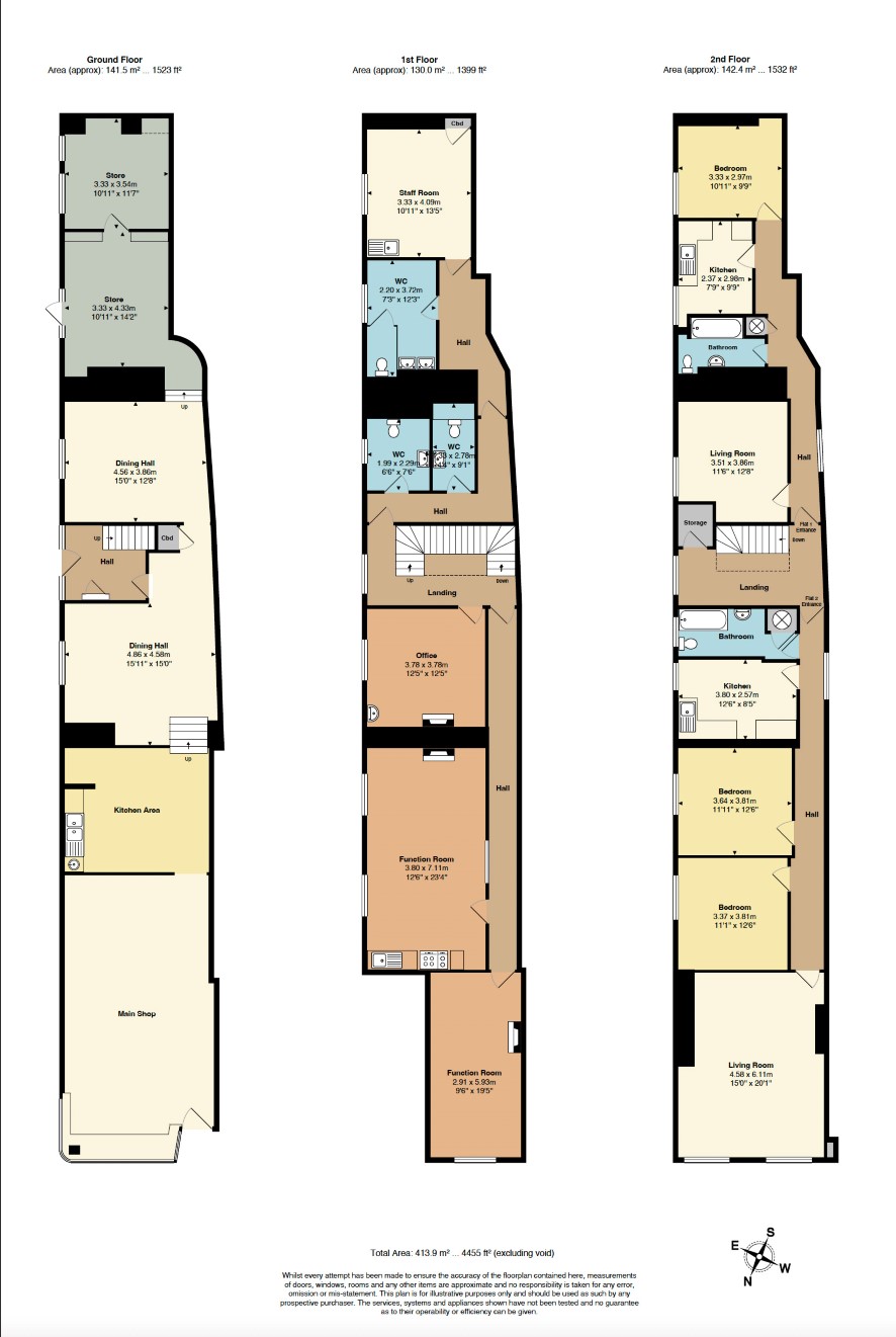 Main Shop Kitchen Area Dining Hall One: 4.86m x 4.58m Dining Hall Two: 4.56m x 3.86m Store One: 3.33 x 4.33m Store Two: 3.33 x 3.54m