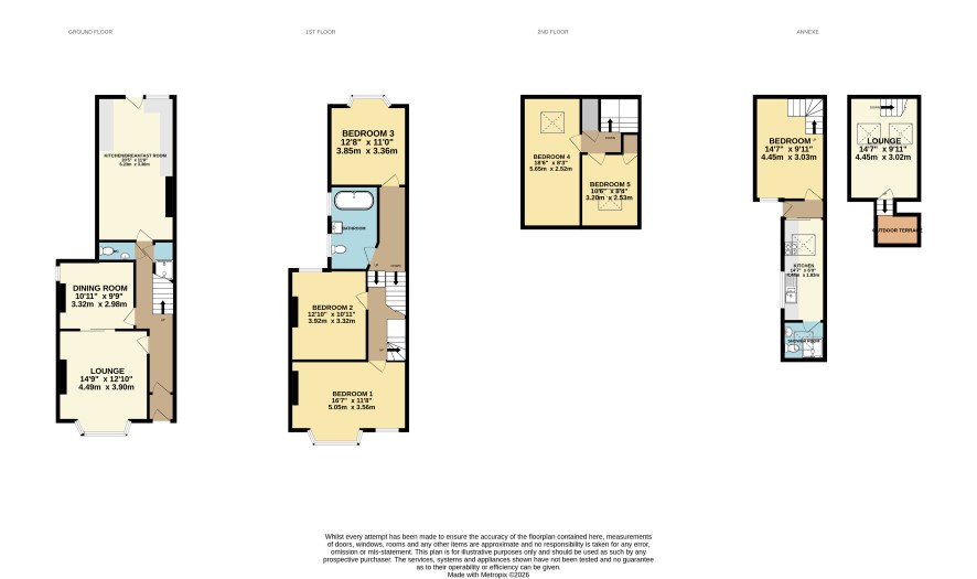 MAIN HOUSE Living Room Dining Room Kitchen/Diner WC Bedroom One Bedroom Two Bedroom Three Family Bathroom Bedroom Four Bedroom Five FLAT Kitchen Shower Room One Bedroom Sitting Room Decked Area ANNEX Kitchen/Diner Shower Room Bedroom Area
