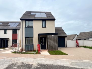 A partially finished development site consisting of 13 new build residential properties, all of differing sizes and stages of completion, located in Tamerton Foliot, Plymouth.