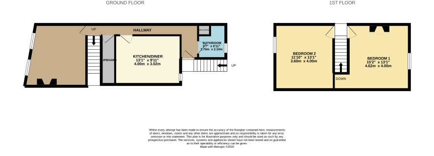 First Floor - Kitchen diner, living room, bathroom and storage cupboard Second Floor - Two double bedrooms