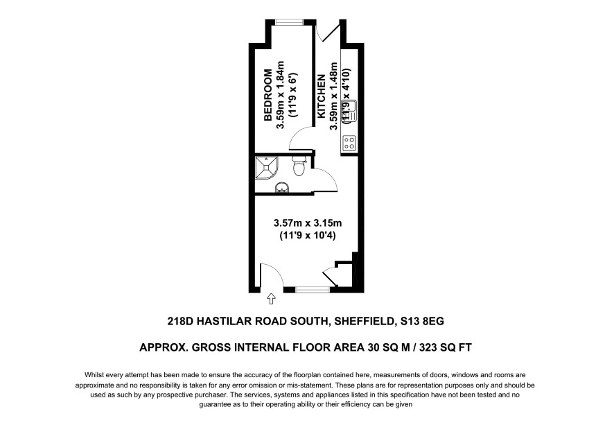 Apartment 218D is a one-bedroom ground-floor flat with expected rentals in the region of £550 per calendar month.