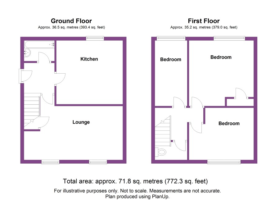 Ground Floor: Lounge (5.5m x 3.0m), Kitchen (3.7m x 3.5m), Bathroom (1.7m x 1.3m) First Floor: Bedroom one (3.6m x 3.5), Bedroom two (3.6m x 3.0m), Bedroom three (3.5m x 1.9m), W.C. (2.1m x 0.8m) Externally: Gardens front & rear