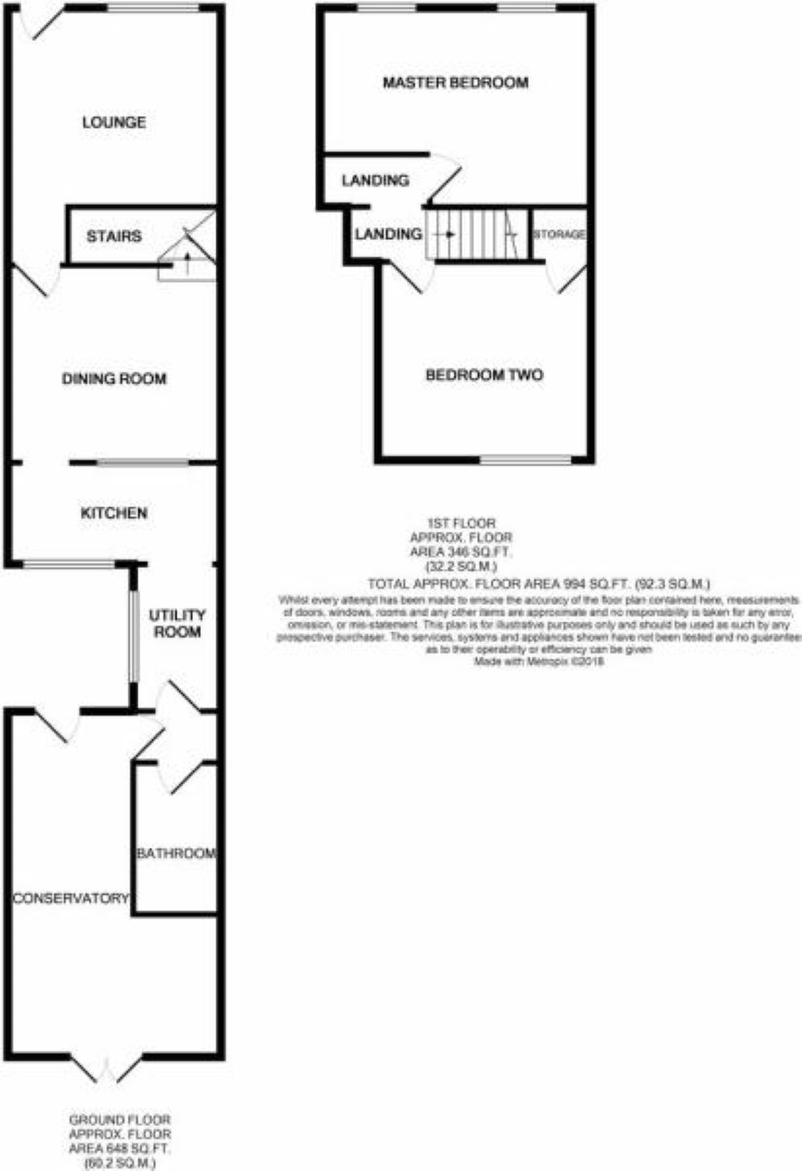 Ground Floor Lounge (3.6m x 4.4m), Dining room (3.6m x 3.4), Kitchen (3.6m x 1.7m), Utility Area (1.5m x 2.6m), Conservatory (3.5m x 5.9m), Bathroom. First Floor Bedroom one (4.6m x 3.4m), Bedroom two (3.6m x 3.4m) Outside Forecourted frontage, large rear garden.