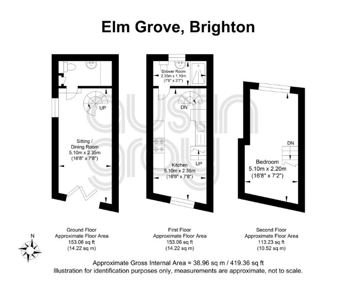 The ground floor comprises a living room with a floor to ceiling height of 3.5m, concertina doors opening on to the front garden area and a feature spiral staircase to the first floor. The first floor provides a shower room, kitchen and room for a table, with stairs to the second floor bedroom.