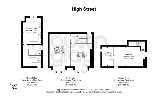 A 2 bedroom flat spanning over 3 floors within a period building. The property comprises of a kitchen and shower room on the first floor, living room and main bedroom on the second floor, with a further bedroom on the third floor, with walk in wardrobe/study.