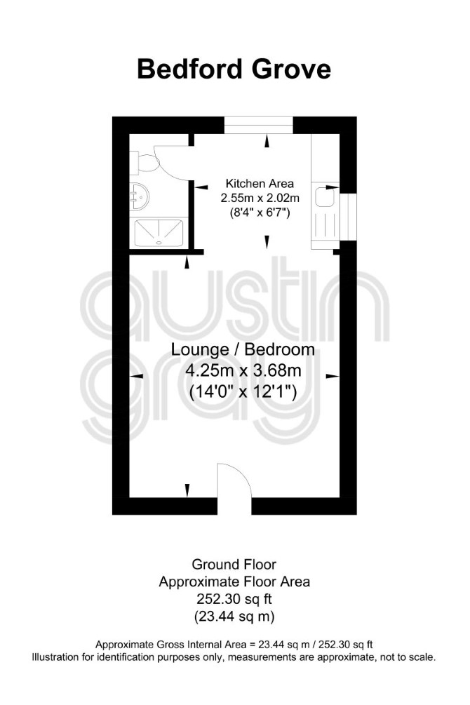 Studio apartment located on the ground floor comprising kitchen, lounge/bedroom and WC, with the benefit of a rear garden.
