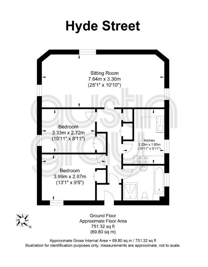 A ground floor flat situated within a purpose built block of apartments. The property comprises of a triple aspect living/dining room, separate kitchen, 2 double bedrooms with built in wardrobes and a family bathroom. Hyde House Gardens has the added benefit of a communal garden and allocated parking space.