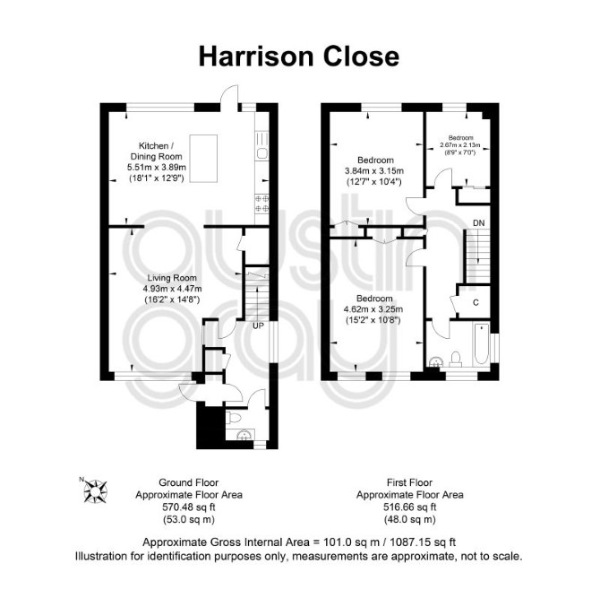 A freehold end of terrace family home with private rear garden. The property comprises an entrance hall, w/c, an open plan living room/dining room/kitchen with patio doors out to the rear garden. Located on the first floor are three bedrooms and a family bathroom.