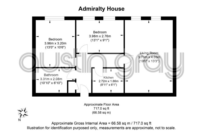 Leasehold mid-floor flat within Admiralty House, a Grade II listed building. The property comprises, reception room, kitchen, two bedrooms and a bathroom.