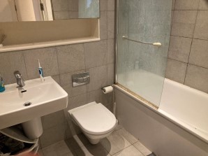 Leasehold first floor flat comprising, an open plan living room, two bedrooms (one with ensuite bathroom) main bathroom, and balcony. The development also benefits from a 24-hour concierge, residents gym and swimming pool.