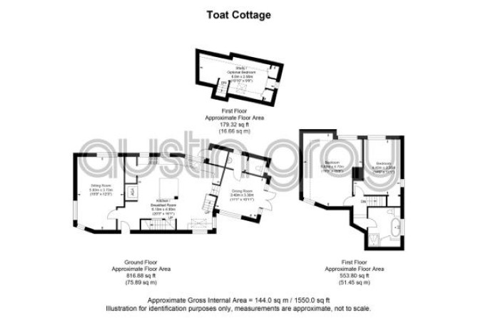 Freehold semi-detached cottage arranged over 2 floors. Toat Cottage comprises living room, kitchen, dining room and w/c on the ground floor. Over the first floor are 2 x bedrooms and a bathroom. There is a separate stair case off the kitchen to a further room which could be used as a study. The property also benefits from a private garden to the rear, across the road is another private garden and a parking space.
