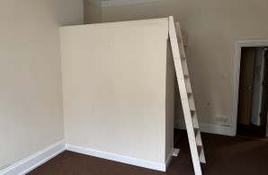 Leasehold ground floor studio flat within a period conversion comprising; studio room with mezzanine and bathroom.
