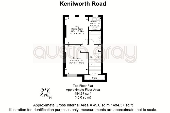 Second floor flat within a period conversion comprising; living/dining area, kitchen, bedroom and bathroom.