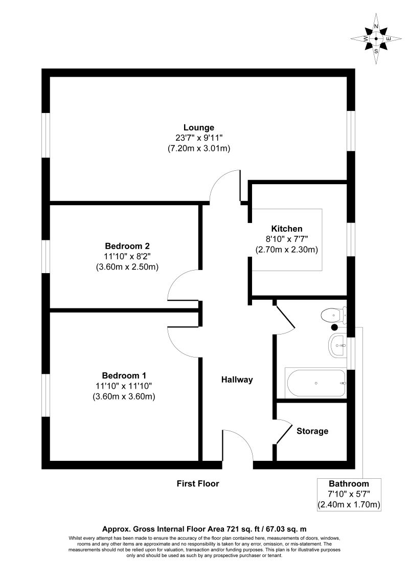 A purpose built second floor flat comprising, living room, kitchen, two bedrooms and bathroom, with communal gardens. Situation The property is situated in Wroxall Village, within easy access of local amenities. Portsmouth Portsea IOW Car Ferry Terminal connects Ventnor with Portsmouth/Portsmouth mainline train station with services to London Waterloo. Location Pin (What3Words): splints.novelists.kings https://w3w.co/splints.novelists.kings Accommodation Hallway Lounge - 7.20 x 3.01 Kitchen - 2.70 x 2.30 Bedroom 1 - 3.60 x 3.60 Bedroom 2 - 3.60 x 2.50 Bathroom - 2.40 x 1.70 Storage Total Floor Area - 67.03 sq.m. NB WE DRAW YOUR ATTENTION TO THE SPECIAL CONDITIONS IN THE LEGAL PACK, REFERRING TO BUYERS PREMIUM OF £1,560 (INC VAT) AND OTHER CHARGES IN ADDITION TO THE PURCHASE PRICE. PLEASE ENSURE YOU READ THE SPECIAL CONDITIONS THOROUGHLY Tenure Leasehold 99 years from 29 September 1974 (approximately 48 years remaining) Ground rent - £10/£25/£50/£100 every 25 years Council Tax - Band A EPC Rating - D