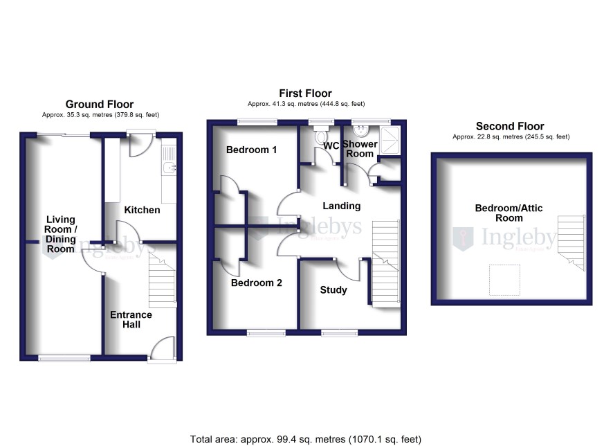 Bedroom One 4.24m x 3.97m Bedroom Two 4.27m x 3.63m Shower Room / Wet Room 2.49m x 1.56m WC 1.68m x 0.94m Bedroom 2.60m x 2.55m