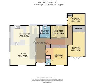 Hallway, Lounge, kitchen/dining room, Four bedrooms (one of which is en-suite), Bathroom.