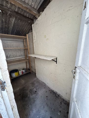 Communal gardens to the rear with access from the kitchen. There is a block built storage shed providing storage. To front is a parking area with further communal gardens.
