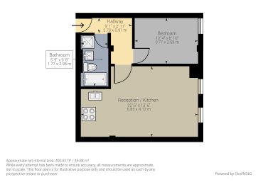 Entered via a secure door with intercom access into an entrance hall with lift to all floors. Once in the flat, there is hallway with storage cupboards, an open plan living area with kitchen including integrated appliances, one bedroom and a bathroom.