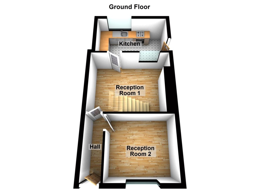 Entrance hall, reception Room 1 (13' 8" x 10' 8" or 4.17m x 3.24m), reception Room 2 (10' 4" x 9' 7" or 3.16m x 2.93m) and a Kitchen (12' 11" x 7' 3" or 3.93m x 2.20m).