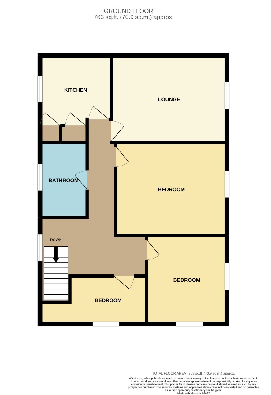 Reception hall, lounge, kitchen, three bedrooms and bathroom.