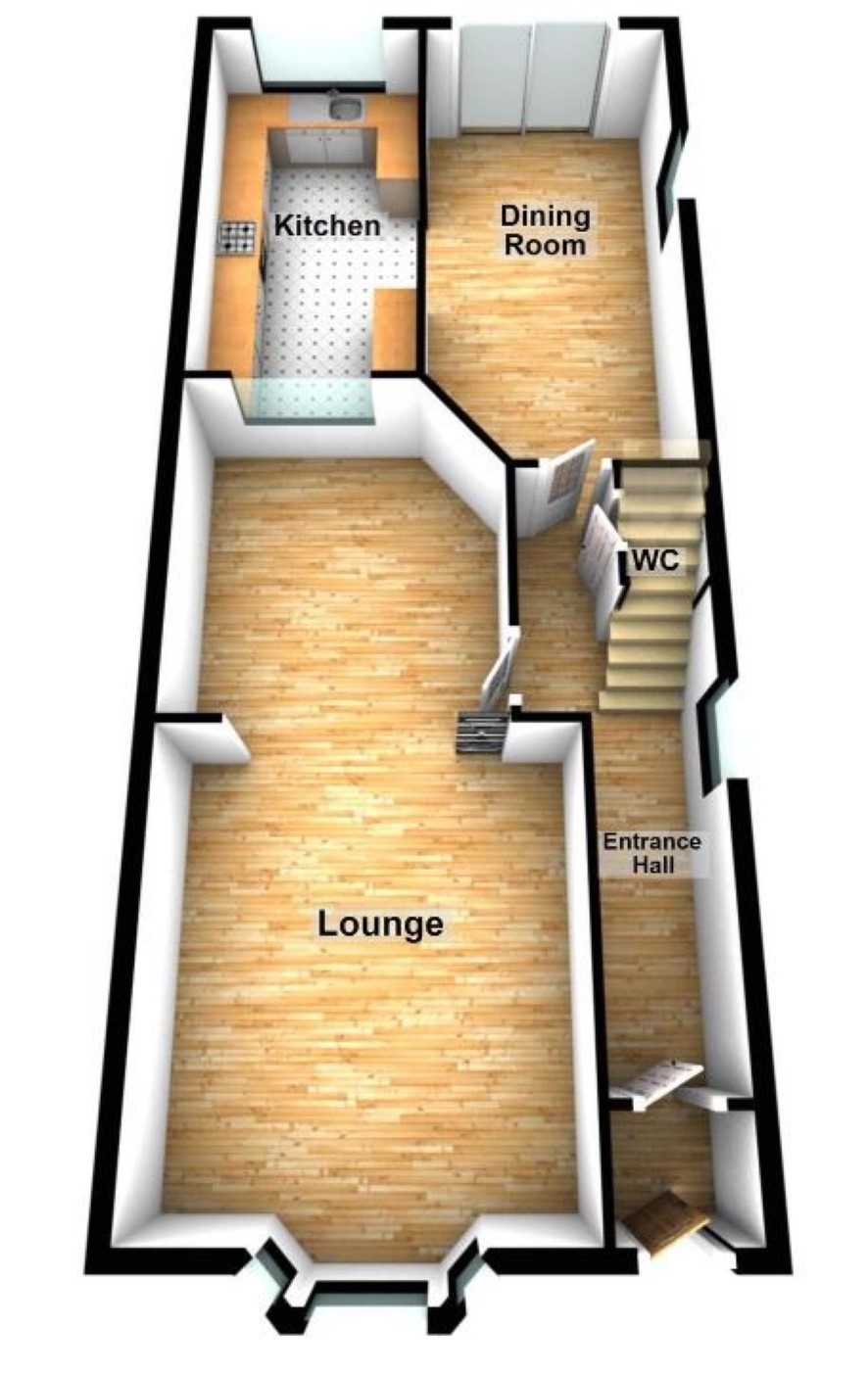 Entrance hall, spacious lounge, dining room, kitchen and cloaks WC.