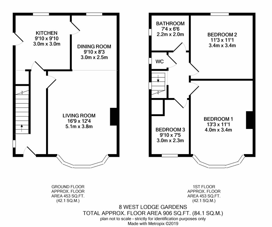 The property has a driveway to the side with gardens front and rear.