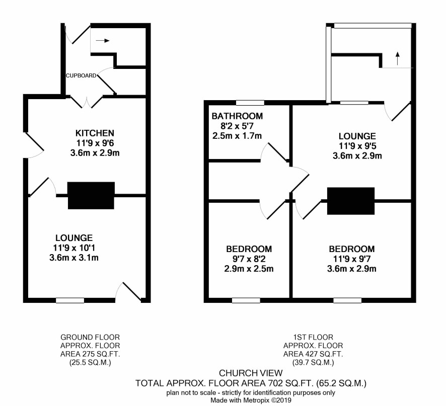 Two bedrooms, living room and bathroom
