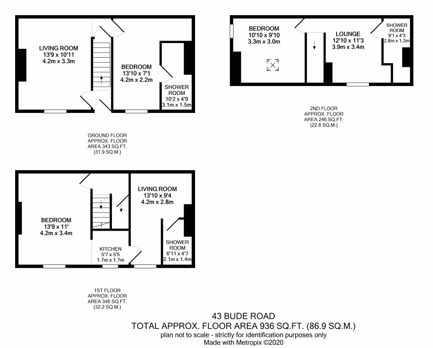 Living room, kitchen. bedroom and shower room