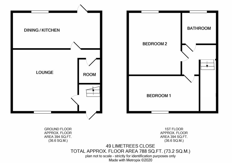 Two bedrooms and a bathroom to the first floor