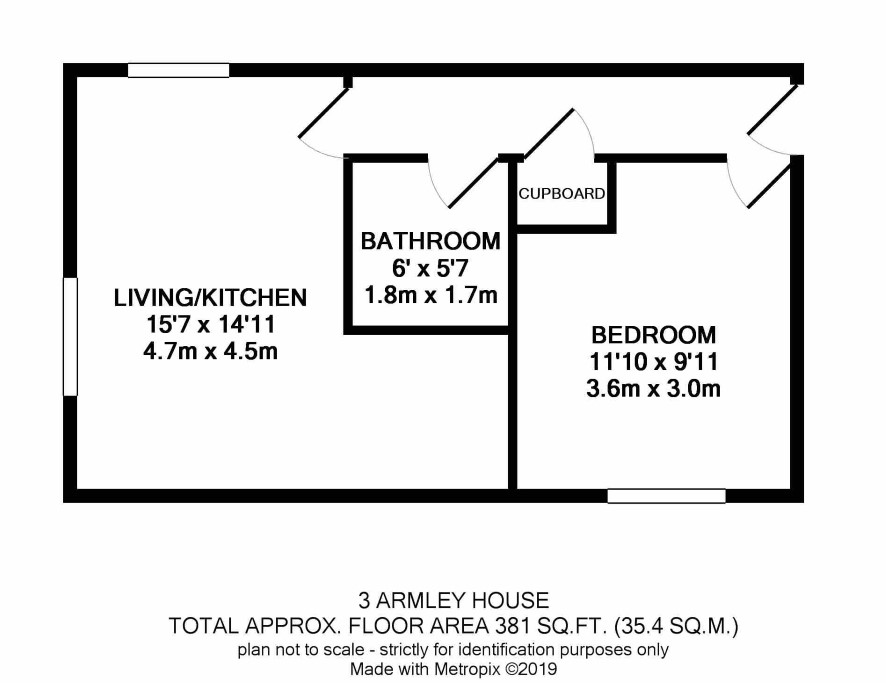 Communal entrance, living kitchen, bedroom and bathroom