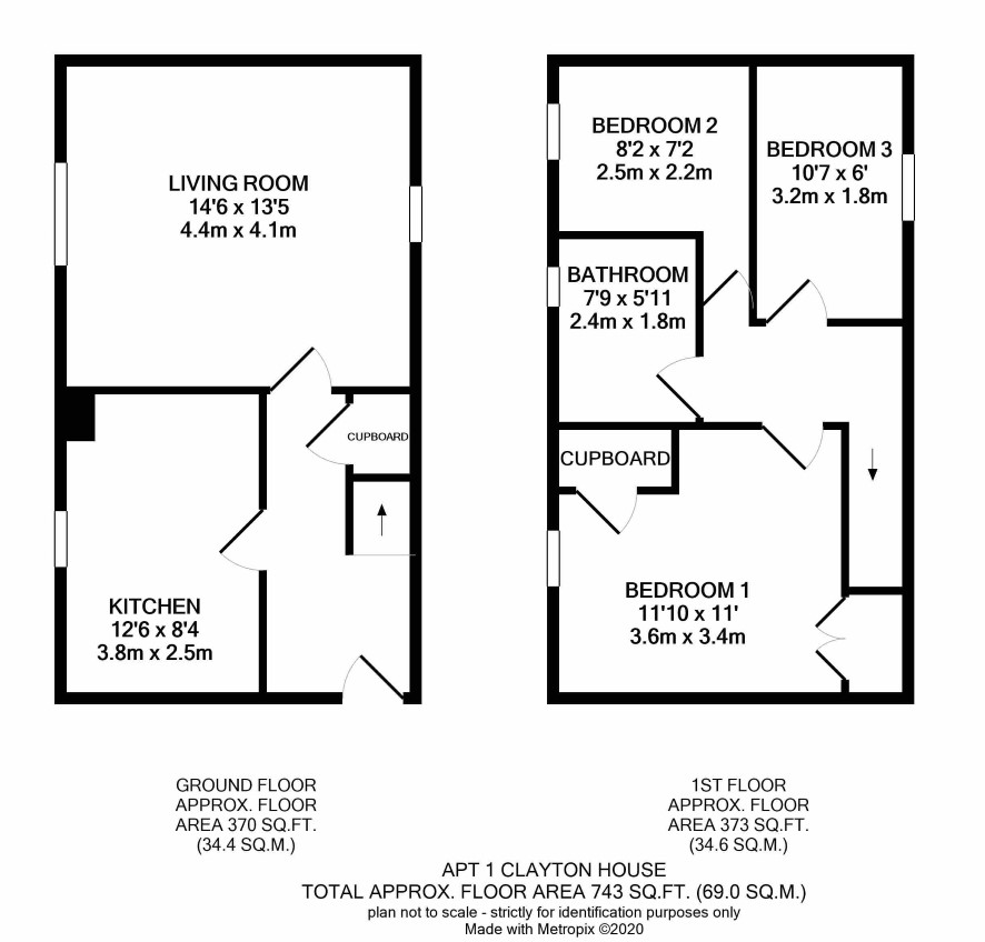 Three bedrooms and a bathroom.