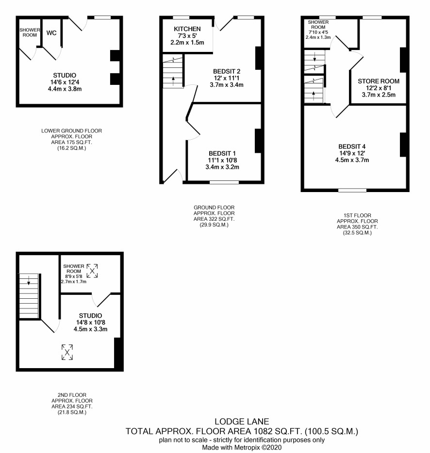 Landing, shared shower room, room 3/store, Bedsit 4.