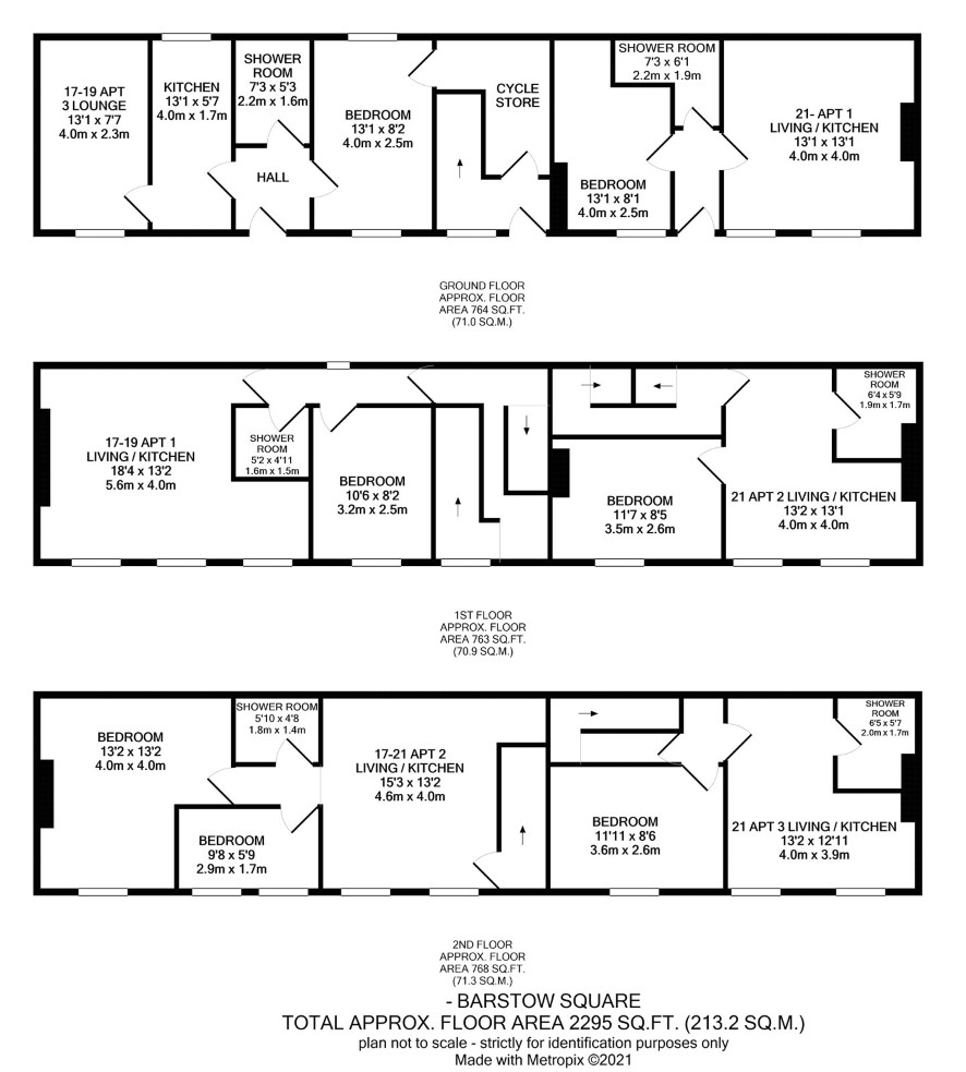 17-19 Flat 2: Living kitchen, two bedrooms and shower room. 21 - Flat 3: Living kitchen, bedroom and shower room.