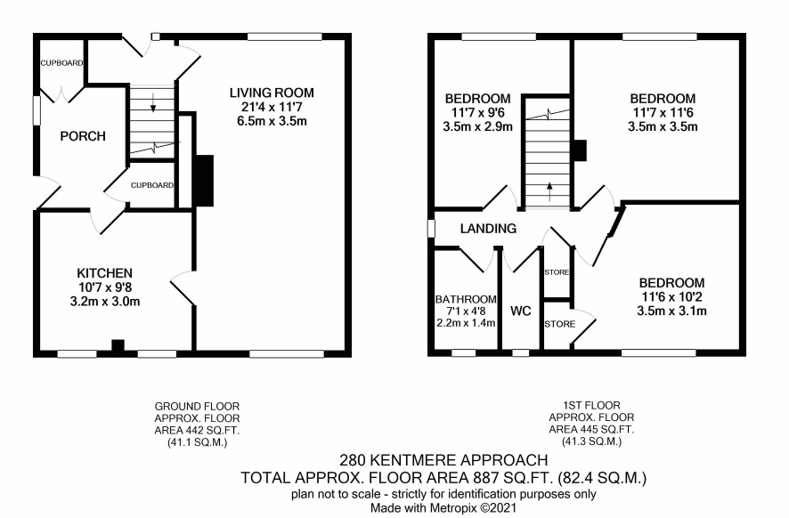 Three bedrooms, bathroom and W.C