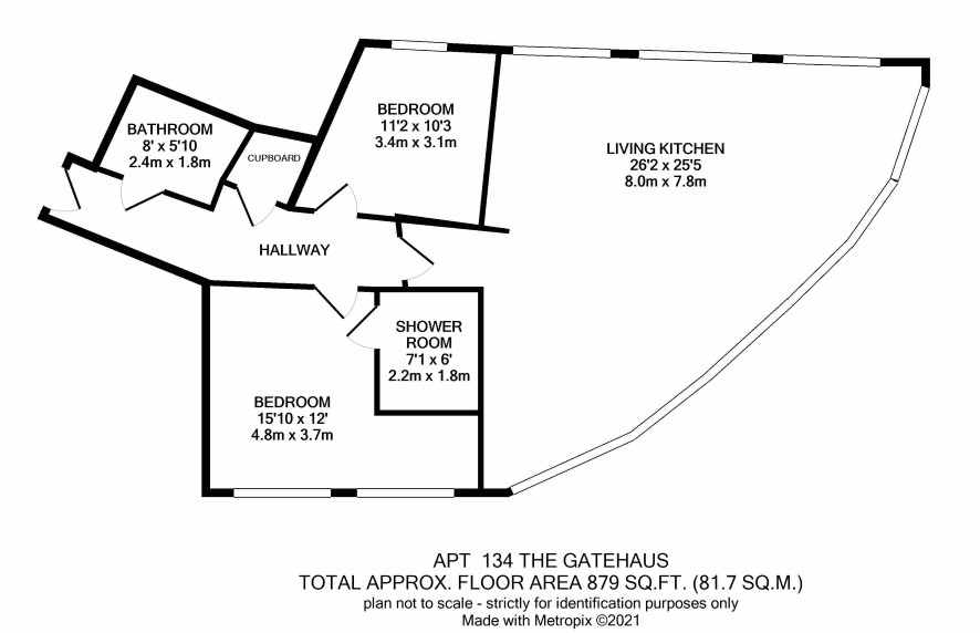 Living/kitchen, two bedrooms and bathroom.