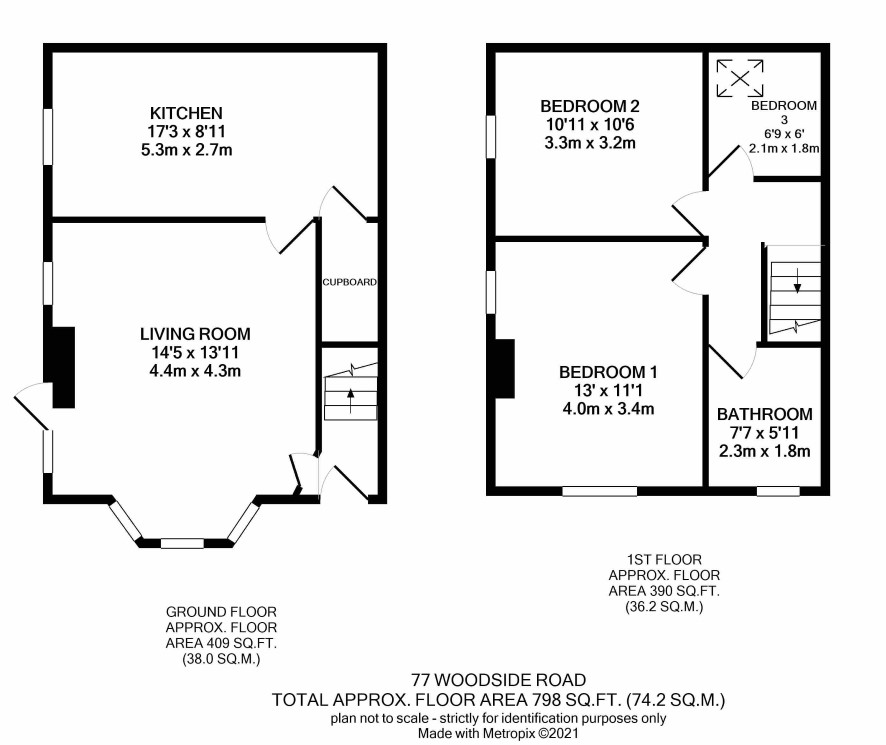 Three bedrooms and a bathroom