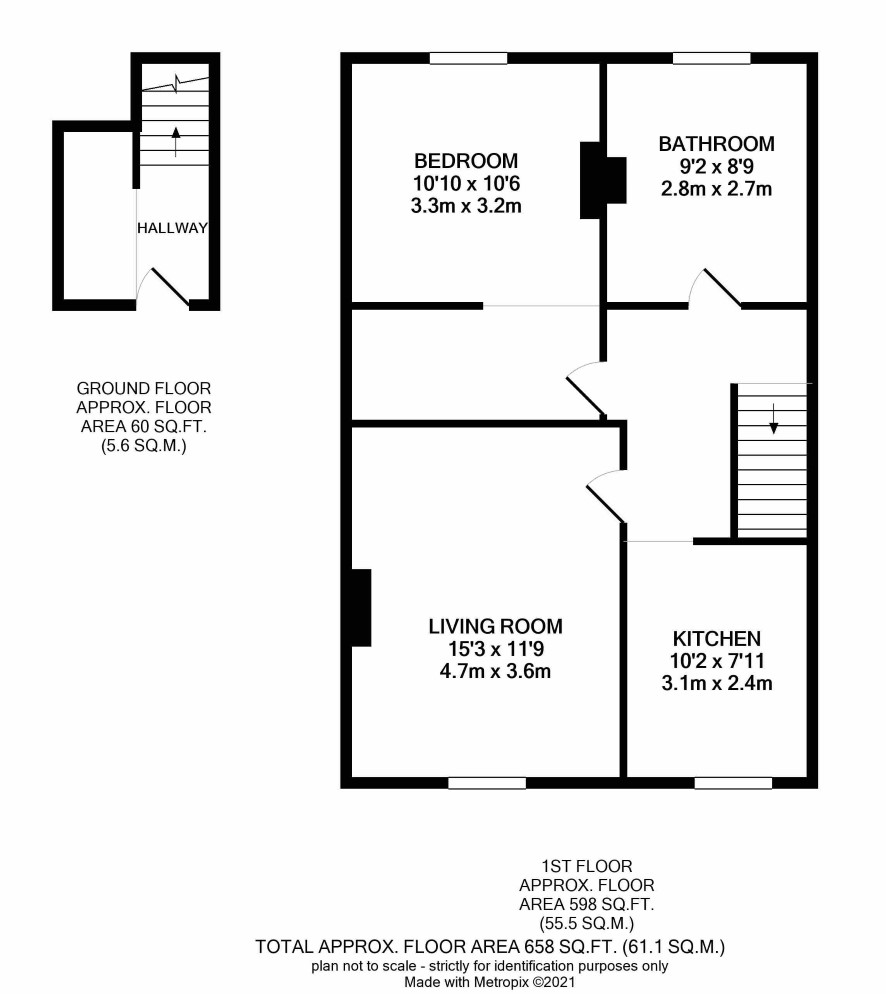 Living room, kitchen, bedroom, bathroom and landing.