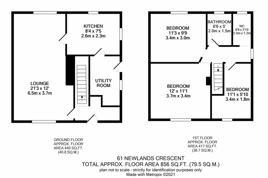 Three bedrooms, bathroom and wc.