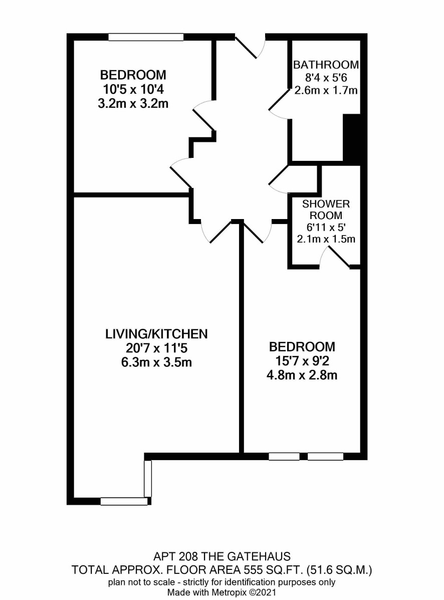 Hall, living kitchen, two bedrooms, bathroom and shower room.