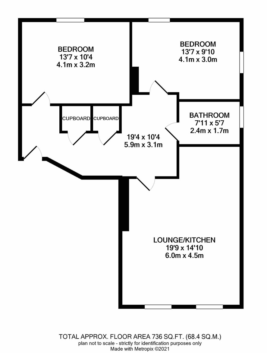 Hall, Living/Kitchen, Two bedrooms and a bathroom