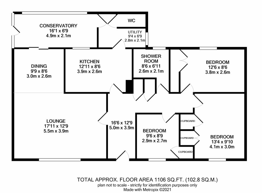 Living/Dining room, Kitchen, Concervatory, Utility room, WC, Shower room and three bedrooms.