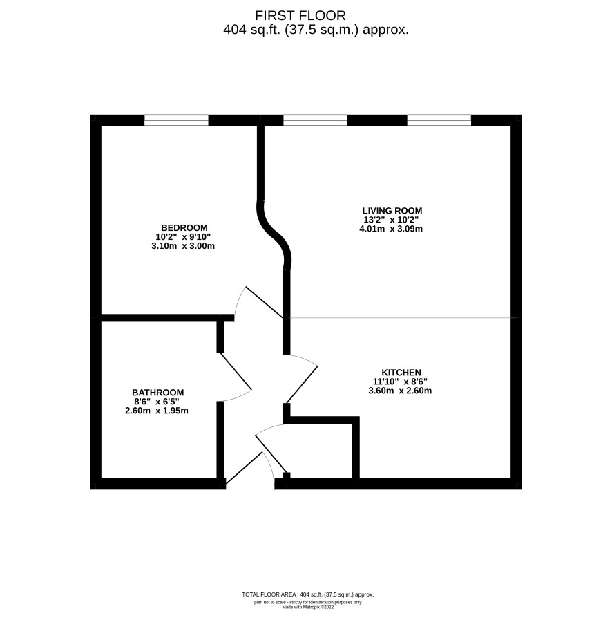 Living/kitchen, bedroom and a bathroom